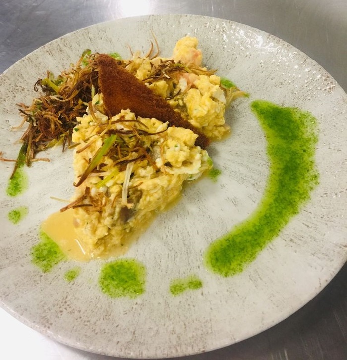 • A continuación añadir los huevos removiendo con una espátula; no dejarlos cuajar en exceso pues se secan.