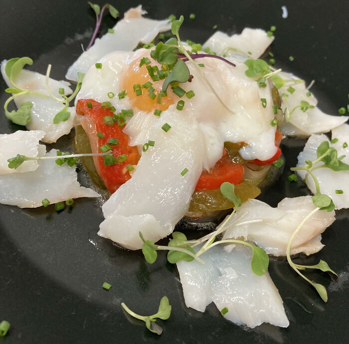 Emplatar los pimientos primero en el plato utilizando un molde circular.